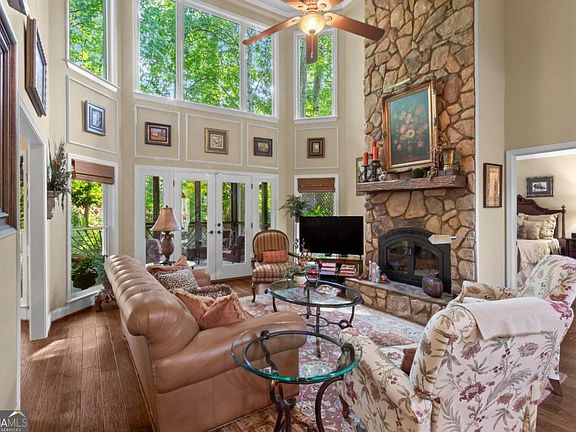 Enjoy refined living with minimal upkeep in this thoughtfully designed home tucked into a quiet cul-de-sac in Towne Lake Hills East, with a view of the 11th hole just outside your driveway. With its smart layout, modern upgrades, and timeless finishes, this residence offers comfort, flexibility, and elegance at every turn. The main level features a spacious primary suite tucked at the back of the home, complete with dual walk-in closets, a spa-style soaking tub with jets, a separate shower, and elegant plantation shutters. Large windows throughout fill the home with natural light, making each room feel bright and open, as if you're outdoors without ever stepping outside. At the heart of the home is a beautifully remodeled kitchen, designed with style, elegance, and ease in mind. Granite countertops, under-cabinet lighting, upgraded cabinetry, and all-new KitchenAid appliances (2023), including a 5-burner gas stove, make cooking and entertaining seamless. Thoughtful touches like a built-in spice rack and a lazy Susan add to the kitchen's functionality. A cozy breakfast nook is adjacent, while a separate formal dining room with bay windows makes hosting special meals a pleasure. Hardwood floors with a hand-scraped finish flow throughout the main level, while custom molding and a crafted staircase with oak treads add warmth and sophistication. The living room impresses with cathedral ceilings and a dramatic floor-to-ceiling stacked-stone fireplace (wood-burning with blower and smoke inhibitor) that becomes the centerpiece of gathering. From here, you step into a screened-in covered porch, overlooking a garden sanctuary complete with mature plantings, French drains, bridges, winding pea-gravel and slate walkways, and a full irrigation system to keep everything lush with ease. It truly becomes a retreat without heavy maintenance. Conveniently, the main level also includes laundry and a powder room, plus a garage with built-in storage plenty large for tools, seasonal gear, or hobby supplies. Upstairs, you'll find two large bedrooms, each with full baths and walk-in closets. But it's the oversized bonus room that really sets this home apart. Tucked privately over the garage and equipped with heating and air, this space is a blank canvas: home theater, gym, art studio, game room, or executive office, the possibilities are endless. Recent updates, including a new tankless water heater in 2023, the upstairs HVAC system replaced in 2022, and the terrace-level HVAC system in 2017, mean that many of the major systems are already taken care of. The neighborhood doesn't disappoint when it comes to amenities: Towne Lake Hills East offers swimming pools, tennis courts, playgrounds, and a common clubhouse space. Green spaces and walking paths are plentiful, allowing for leisurely strolls and outdoor enjoyment without having to travel far. Excellent schools, shopping, dining, and recreation are all nearby. If you're seeking a home that delivers comfort, character, and minimal upkeep without sacrificing space or style, this one checks all the boxes.