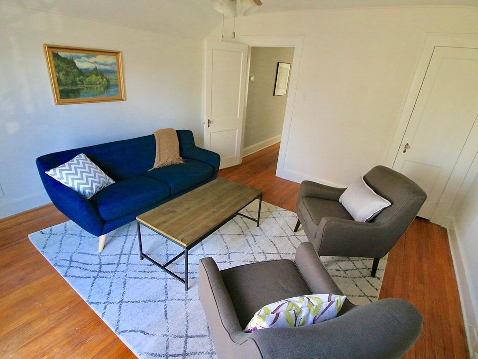 Freshly remodeled and tastefully FURNISHED 1 bedroom upstairs 1000 sf duplex in heart of downtown Winston Salem. Brand new kitchen and w/d. Lovely living room opening to tranquil deck with treehouse feel overlooking trees and city scape. Private setting, off street parking. Open to short term renters. $1,250 includes water & yard service with 1 month free high speed internet. Available now. Owner pays water, yard service and one month internet