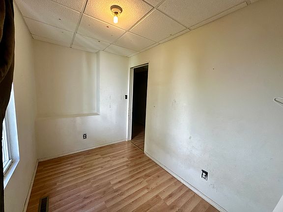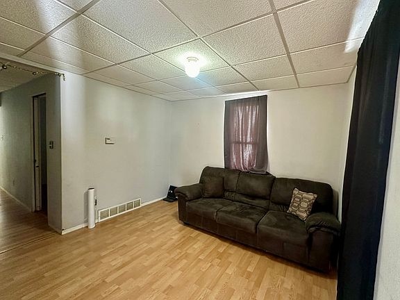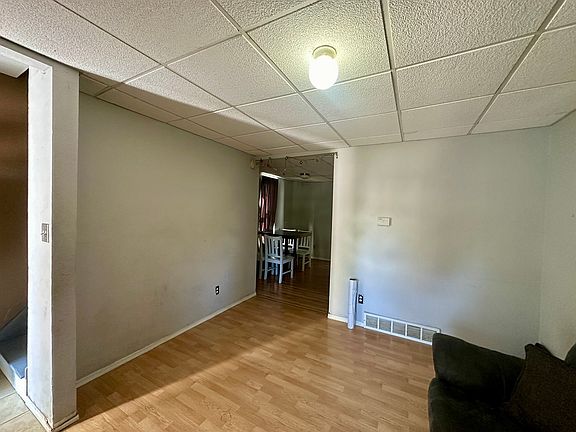 Great rental opportunity or first home! This home is small but spacious with living room, dining room, kitchen, and den all on the main floor. Two bedrooms and bathroom upstairs. Wood laminate flooring throughout most of the home! Roof estimated 6yrs old and vinyl windows for efficiency. Appliances included not warranted. Small yard, low maintenance! Detached one car garage with alley access. Sold as-is. Cash or conventional only.