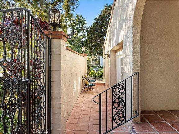 One of the finest examples of Spanish revival architecture in Golden Hills is now available to the market, featuring the best aspects of this iconic style, 613 W. Fern Drive is more than a home, it’s a feeling. Ensconced behind a stucco wall and iron gates, the front porch welcomes you in with private patio seating areas on each side of the front door. A statement in its own right, the hand crafted wooden front door leads into a captivating interior. Generously scaled public spaces provide for both ideal daily living and entertaining. The barrel ceiling of the living room and faux fireplace are true highlights as are the multiple original French pane windows with decorative iron bar accents. Adjacent the living room is the dining room with hardwood floors and a coffered ceiling detail and striking iron chandelier. A remodeled kitchen features granite counter and natural stained wood cabinetry plus a suite of S.S. appliances including fridge. A breakfast nook and coffee bar complete the kitchen. A French door leads out to the resort like backyard. Surprising in its scale is the separate family room with wonderful beam ceiling details and a stylish remodeled gas fireplace which is flanked by the stunning stained glass windows. A unique feature of dual primary suites with Spanish inspired en-suite bathrooms provides a widely versatile number of uses, both bathrooms enjoy custom and colorful Spanish tiles and custom cabinetry and showers. An additional bedroom and bathroom complete the living spaces. A true escape awaits outside with a BBQ island palapa with counter seating, dual burner grill and beverage fridge. The custom pool and spa includes a waterfall feature with custom tile detail. The upper level of the yard provides additional patio space and a freestanding gazebo. A 2 car detached garage sits at the rear of the property with alley access. Multiple solar panels provide for significantly reduced electrical bills and the newly adopted Mills Act makes this home an ideal candidate to apply for significantly reduced property taxes! Don’t miss this rare offering in a coveted locale close to schools, trails, and Downtown Fullerton.