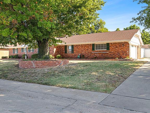 Say hello to 613 W Matthews Street in El Reno! This one-owner single-story, ranch-style home located in Gadberry Addition, built in 1965, offers a perfect blend of classic charm and modern comfort. With 2,376 square feet of living space, this property is ideal for those looking for room to grow and create lasting memories. Step inside to the formal living area accented with a brick wall and opens to the formal dining room just adjacent to the kitchen. The kitchen features custom cabinetry, updated countertops and opens to a larger living space featuring custom built-in cabinetry and a fireplace. The large windows overlook the manicured backyard. All four bedrooms are nicely sized, two of which feature en-suite bathrooms. Additionally, one bedroom features custom built-in cabinetry perfect for a home office or play room. The backyard is plenty spacious with a patio and lined with a custom brick fence plus a shed that offers electricity, perfect for hobbies and your favorite outdoor activities! There is a lot to love about this one! Don't wait! Schedule your private tour today!
