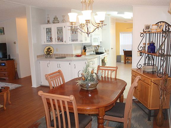 2BR 2BA 1316 SQ. FT. Home, Partially Furnished, Charming and well kept home. Double covered carport, Large golf cart shed, Large eat in kitchen with loads of cabinet space, Large master suite and bath, Windowed Lanai with AC, Newer Laminate floors throughout, Large corner lot. Roof 8 years old, AC is 5 years old. Beautifully decorated, Priced To Sell.