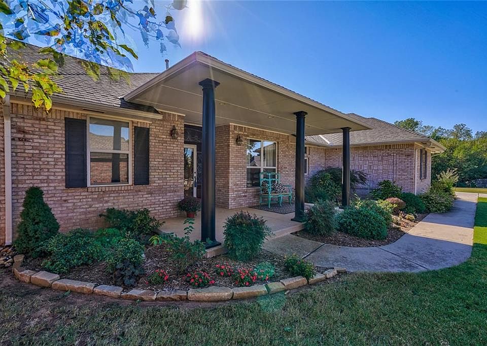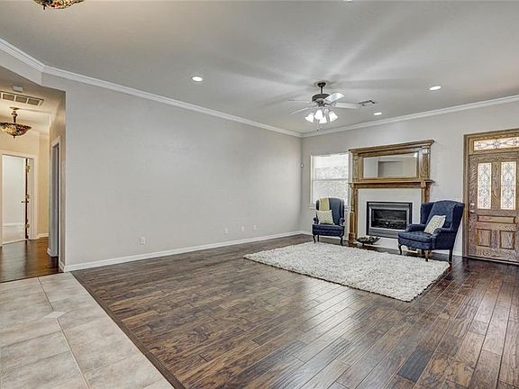 4 CAR GARAGE tucked back in one of the BEST neighborhoods Yukon has to offer. One level, the home opens to a beautiful living with wood floors and a beautiful oak fireplace mantle with built in mirror. The newly updated kitchen and dining are to your right with lots of window view on the front of the home. Huge built in refrigerator, S/S double ovens, new Quartz countertops and sink. GENEROUS space for your family dining table. The master suite is across from the kitchen, hosting double vanities, jetted tub, walk in closet, a mimi office with storage leading into laundry area! The 3 secondary rooms are extra large with handi-cap size door ways, sharing a hall bath and the powder bath. The forth car garage is tandem with opening to back yard.. No one on the side of you and a private residence behind the property that you can not see... Its the best lot in the neighborhood. Come sit on the covered front porch for morning coffee. MAKE THIS ONE YOURS!!NEW HVAC BEING INSTALLED!