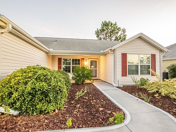 Beautiful 3 bedroom home in The Villages neighborhood on lovely landscaped corner lot. Split floor plan with open kitchen and living room/dining room combo featuring NEW wood LVP floors. Kitchen showcases stainless steel appliances, and center island with breakfast bar. Bedroom on opposite side of home as well as a separate laundry room adjacent to the garage. Roomy newly carpeted master bedroom includes walk in closet and en-suite bathroom with shower. Over-sized screened lanai off rear sliding boosts above ground spa. Plus landscaped backyard with mature landscaping. Community is conveniently located in close proximity to golfing, shopping, dining, and schools.