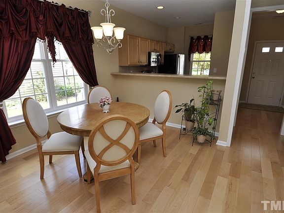 Gorgeous 3 Bedroom, 2.5 Bath, 1 Car Garage, End Unit, Town Home w/ Tons of Natural Light. This Very Well Maintained Home Backs to Wooded Area & is Walking Distance to Neuse River Trail. Enjoy the evenings sitting in the Screened & Tiled Floor Patio. Excellent Sight Lines in the Down Stairs, Open Concept, Living Area. Swimming Pool Community with a Clubhouse and Fitness Center. Down Stairs is All Wood Flooring with Carpet leading up the stairs and throughout the Bedrooms Upstairs. Fresh Interior Paint too!