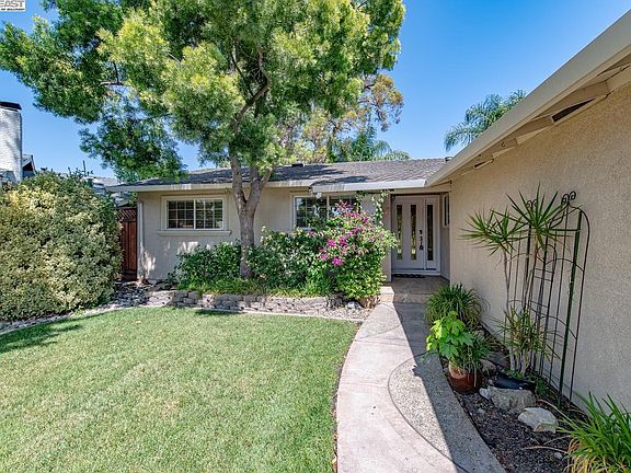 Charming single-story home in Pleasanton’s Val Vista neighborhood with mature shade trees and a spacious layout. The kitchen features large format tile counters, matching backsplash, white appliances including gas range, oven, microwave, refrigerator, and dishwasher. Adjacent dining area and pantry offer convenience. The living and family rooms have been opened up to form a large great room with a wood-burning fireplace and two sliding doors to the backyard. The primary bedroom includes a walk-in closet and en-suite bath with a stall shower. Two additional bedrooms with built-in storage share a full bath with a shower-over-tub. The backyard is ideal for outdoor living with a large patio, lawn, and garden with palm trees. Located near Pleasanton Elementary, Val Vista Park, shopping, and historic downtown. Easy access to freeways, sport clubs, and Livermore Valley Wine Country. A perfect blend of comfort, location, and lifestyle!