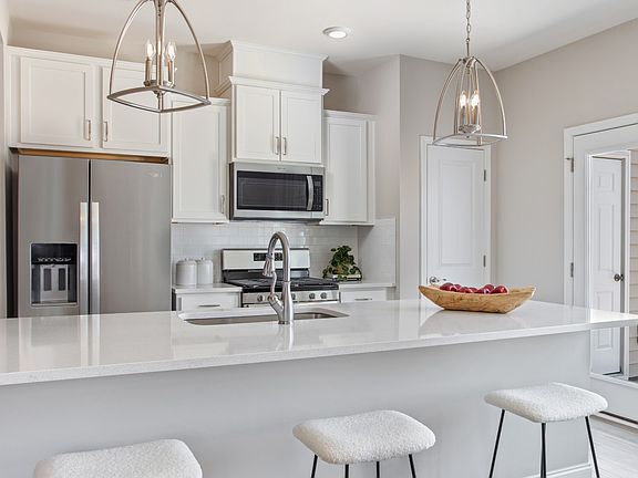 Spacious open concept kitchen with a 9 foot centered island sits adjacent to the airy family room and breakfast room. The second level living includes three bedrooms, two full bathrooms and the laundry room. The roomy primary suite boasts an expansive walk-in closet and a primary bathroom with a dual vanity. Home includes 1 car garage with 2 car parking pad. This specific homesite includes granite and quartz countertops, upgraded cabinets, stainless steel appliances, outdoor patio, and a tile shower in the primary bath.