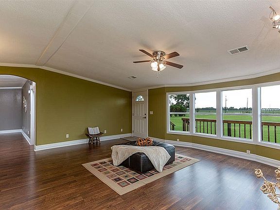 Bring your family and your horses- there's plenty of room to roam! This immaculate 4 bedroom, 2 bath home boasts 2100 square feet and is located on approximately 6 acres of land. The house sits in the partially fenced front section of the property with a fully fenced pasture in the back. Inside, the semi-open floor plan allows direct access from the kitchen to both the living and dining rooms. Wood floors flow throughout the main living area as well the bedrooms. A spacious laundry room neighbors the updated kitchen featuring stainless steel appliances and a beautiful tile backsplash as well as ample storage and counter space. High ceilings and a gorgeous stone fireplace invite you into the living room where natural light abounds. The private master suite is located away from additional bedrooms and features an enormous walk-in closet. The en-suite bath has a garden tub and separate shower as well as his and hers vanities. With three additional bedrooms, there's plenty of room for a large or growing family or even a home office! Bring your rockers and enjoy morning coffee on the front porch or take in the view on the large wooden deck out back. An additional covered patio is located just steps from the deck allowing for plenty of space to grill and relax outdoors. The covered patio flanks a garage space backed by a separate storage area perfect for lawn equipment, tools, or an ATV. Enjoy the cooler fall evenings and roast some s'mores around the firepit with family and friends. This is a home you don't want to miss!