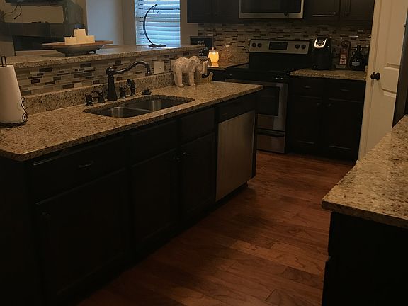 Beautiful home in Kensington Community w/ 4BR/3BA + large upstairs bonus room. Home features upgrades throughout including luxury vinyl plank (2023) in main living spaces, new carpet in bedrooms (2023), granite countertops, tile backsplash, stainless steel appliances (NEW dishwasher 2021, range 2022), wood-burning fireplace with slate tile, and tankless water heater. Master suite features incredible luxury bath featuring spa shower, double vanities, two walk in closets and more. Covered patio overlooking neighborhood park w/ wood privacy fence! Across from community pool!