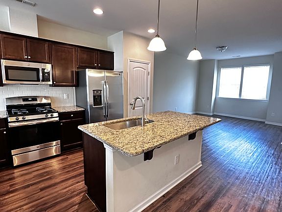 Location location location! Beautiful townhome located in the 5401 North community in Raleigh. 3 bedroom, open layout with lots of natural lighting throughout the property. Spacious kitchen with stainless steel appliances, (gas range), 1-car garage, upstairs bedrooms are also spacious with carpeted floors. Dual-vanity in primary bathroom. Property has a balcony that faces the gorgeous community pool/clubhouse. Very convenient location right next to the Neuse River with walking/biking trails. Shopping/dining/grocery stores close by. Homeowner pays HOA fee, so landscaping is included. All utilities not included, 12-month lease, any pets will require a one-time nonrefundable fee. $50 company application fee, but you do not need to pay it unless you're approved to rent the house! No upfront fees except the fee you pay to Zillow to apply. No smoking allowed inside the home or in garage.