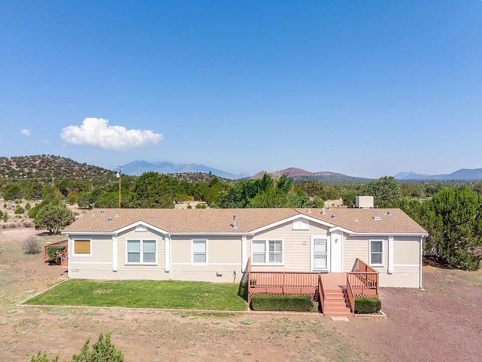 Located just 6 minutes from I-40 and just 19 minutes from Flagstaff, this 2,280 sq ft home sits on a quiet 2 1/2 acres. Very well taken care of 3 bedrooms 3 1/2 baths, living room, family room, and formal dining room make this home a country delight. The home has 2 open decks and views of the San Francisco Peaks. There are 2 very large storage units as seen in the photos.