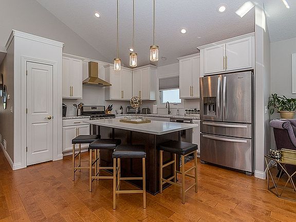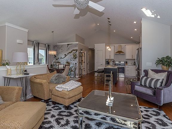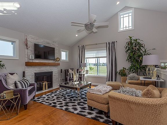 minutes from I-74. The main level has hardwood floors, cathedral ceiling, and features a fireplace. The kitchen features hardwood floors, laminate counters, stainless steel appliances and quartz breakfast bar. Appliances stay with the home. The master bedroom is located on the upper level and features carpet floors, tray ceiling and walk-in closet. The attached master bath includes tile floors, solid surface counters and tiled shower. The upper level includes 3 bedrooms and 2 full baths. The finished lower level features a bedroom, full bath, workout area, storage area and laundry room. Outside you'll find a treated wood deck overlooking the yard.