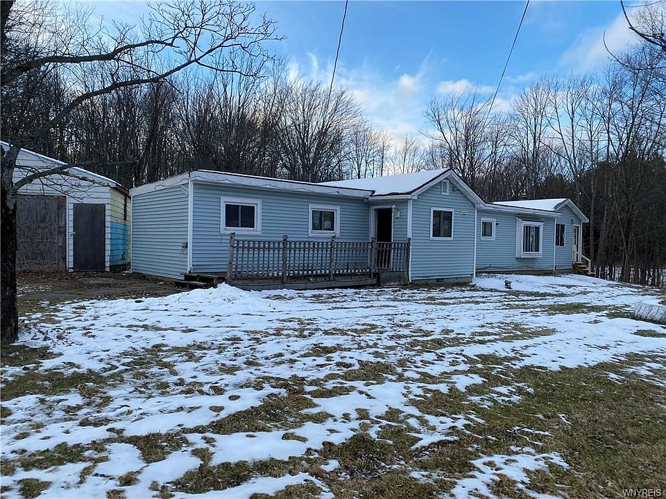 Opportunity is knocking with this 3 possible 4 bedroom, 1 bath ranch on 1 acre of land! Watch the wildlife in your backyard. 2 car detached garage, shed, natural gas. Love to ski? This home is only 10 minutes from Kissing Bridge and 30 minutes from Holiday Valley. Numerous state parks nearby. This home needs some love to bring it back to life or demolish it and build a new home in the foothills of Boston!
