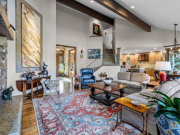 Framed by tranquil lake and fairway views, this updated Broken Top home blends Northwest architecture with a fresh, refined aesthetic. The great room highlights soaring beamed ceilings, a hand-cut stone fireplace, & expansive glass doors that open to multiple patios for true indoor-outdoor living. The remodeled kitchen includes Wolf double ovens & induction cooktop, commercial-grade hood, island seating, wet bar, and a butler's pantry with wine fridge. A formal dining room overlooks the front water feature, while the breakfast nook captures shimmering lake views. The main-level primary suite offers a peaceful retreat with fireplace, spa-inspired bath, hot-tub patio, and a walk-in closet with its own washer & dryer. Also on the main level are a refined office overlooking the front water feature and a full guest suite with private lake view patio. Upstairs, guests enjoy a spacious bonus room, second full en-suite, and sweeping views of the lake and golf course. Oversized 3-car garag