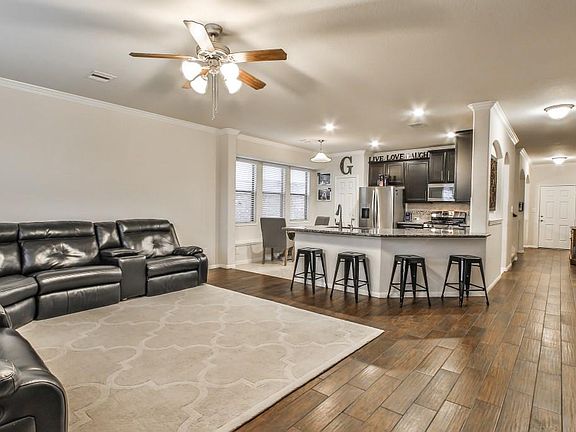 Spacious, immaculate 5 bedroom practically new without the new price! Soaring ceilings,wood look tiled flooring downstairs.Eat-in Kitchen with beautiful 42'' cabinets,granite counter tops,walk-in pantry all open to living area.Master bedroom suite has tall ceilings and will accommodate large furniture,double sinks,separate tiled shower,decorative tile surrounding relaxing garden tub. Gameroom upstairs is large enough to let your imagination dream of the possibilities! Beautiful backyard view!