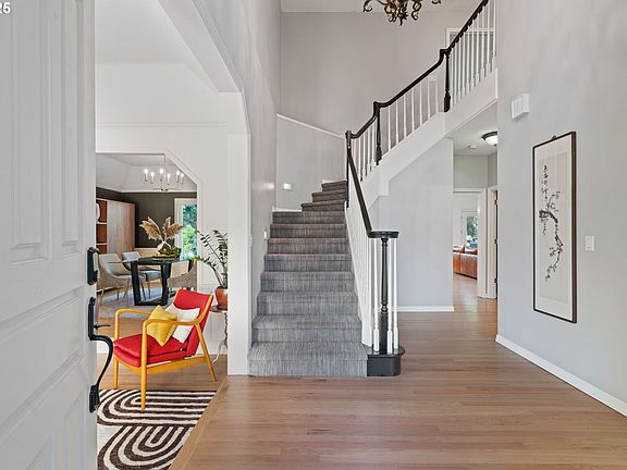 Grand traditional on a quiet cul-de-sac in Hidden Springs! This home has the ideal floor plan with tons of storage, large, open room sizes, multiple living spaces, dedicated office and bedrooms for everyone. All on a quarter acre lot with a private back yard (no need for blinds in the back on the house!), no freeway noise and super close to schools (stroll to Trillium Creek Primary in 8 minutes, Rosemont Middle in 12 minutes & 10 minutes bus ride to 2 high schools), restaurants and shopping! Statement entry with cathedral ceiling, elegant millwork with wainscoting & crown molding in the formal living & dining. Generously sized great room kitchen, eating area with bay window bench seats and family room with built-ins & French doors out to the newly reinforced Trex deck with updated, modern railing. Refinished light oak floors & high ceilings throughout the main. Oversized primary suite with vaulted ceilings, steam shower, heated tile floors & extensively built out walk-in closet. Pictures don’t show the mountain & valley views from the newly installed corner picture window. 2 additional bedrooms & a full bath upstairs. Find the 4th & 5th bedrooms in the daylight basement with a full bath, TONS of storage space/closets and a large bonus room with fireplace, builtins, and slider out to the back. Outside, find a covered patio, pond water feature that is an ecosystem in itself and a nicely terraced backyard down to a reinforced pergola and firepit, flat lawn & garden beds. New pear & fig trees in the front yard and mature blueberry bushes in the back! 3 car oversized garage with hard wiring for level 2 electric car charger. Newer furnace + A/C, new double pane Milgard windows in front of home, new TRIPPLE pane windows in the back, presidential shingle roof. HOA offers optional access to community pool, tennis courts & commons for a small yearly fee! Do not miss this incredible value!