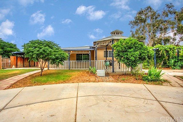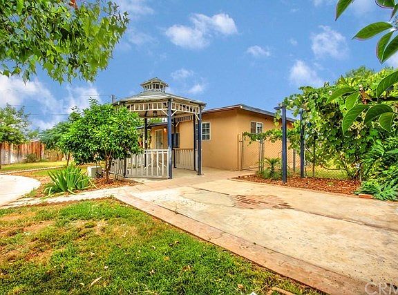 Wonderful single story home on a large gated lot. Three bedrooms, One full bath, spacious living room that is open to the kitchen. The home boasts neutral tile floors, upgraded carpet, dual pane windows, updated kitchen with white appliances, circular driveway in the front adds to the curb appeal of this great starter home or investment. The yard features, mature trees, grape vines. It also includes an orange, peach, tangerine, lemon, fig, pomegranate, apricot, sweet lime, and papaya tree. Home also features an indoor laundry area, builtin shed and covered parking. With a low tax rate and no HOA, this is a great opportunity!