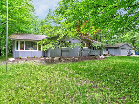 COMPLETELY REMODELED ranch home sitting on over 2 acers on a private wooded lot with mature trees butting up to a creek. You will absolutely love the open floor plan, the updated accents throughout, the fresh paint, new flooring, and the in-ground pool in the backyard! The Master Suite stuns with tall ceilings, and a barn door leading you to the completely remodeled bath with walk in tiled shower and soaking tub overlooking the serene backyard, and a slider to the deck. This spacious home also offers 3 additional bedrooms and 2 more full baths, making this the perfect home for a starting family. More amenities include a full basement ready for finishing or storage, and a detached 2 stall garage. Close to town and easy access to the highway! Don't miss out, call today for a private tour!