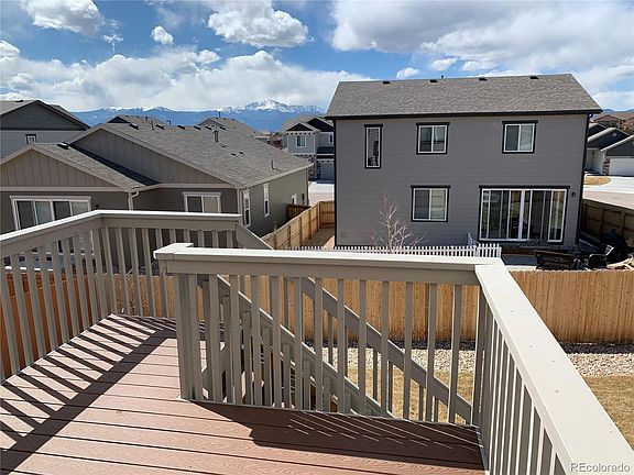 Better than new 2 story home with an open floor plan, wood floors in the kitchen and dining room. Granite counters & stainless steel appliances. Walkout deck off of the main floor with views of Pikes Peak. Walkout basement that opens up to a large fenced in yard. Plenty of room to grow with a 746 sq feet basement.