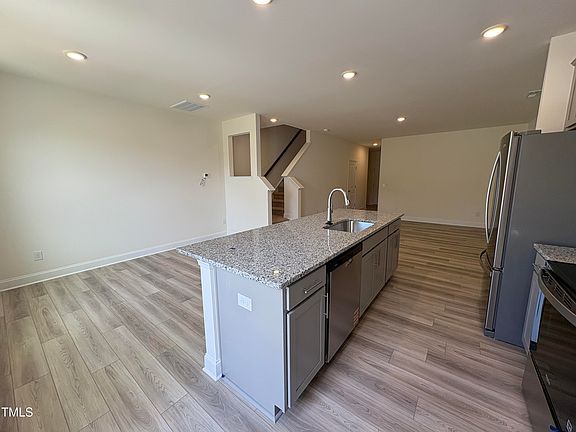 This is the last Litchfield Plan home in Battle Bridge! This home is a 2-story open concept Litchfield Plan, 3 bedrooms, 2.5 bath townhome, w/ 1 car front entry garage. WASHER , DRYER, FRIDGE! The spacious family room w/ 9ft ceilings opens to the kitchen w/ granite countertops & island, upgraded cabinets, SS appliances, eat in dining, & access to outdoor patio & storage. Large Owners Suite w/ walk in closet, sitting area, bathroom w/dual vanity, quartz countertops. Luxury Plank flooring throughout the main living area, all baths & laundry. Convenient to shopping, dining, & walking trails. Prime location just 15 Minutes from DT Raleigh! Ready to Close in May!