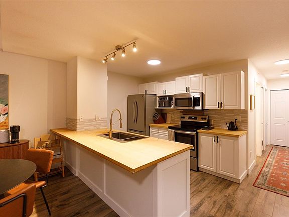 Welcome to Unit B – 6132 McGirr Road, a stylishly updated 2-bed, 2-bath townhome with a den, located in one of North Nanaimo’s most convenient neighbourhoods. Step inside to an open-concept living space with vaulted ceilings and a cozy gas fireplace that creates a bright and inviting atmosphere. The kitchen boasts stainless steel appliances, modern white cabinetry, and a brand-new fridge. You’ll find a spacious 4-piece bathroom, a large utility closet with a brand-new washer and dryer, and two well-sized bedrooms at the rear of the home. The primary bedroom includes a beautifully updated 3-piece ensuite, complete with a stylish barn door. Additional upgrades include a 2-year-old gas hot water tank, fresh paint throughout, updated flooring, a brand-new roof, and a convenient storage room off the deck. (Measurements approximate; verify if important)