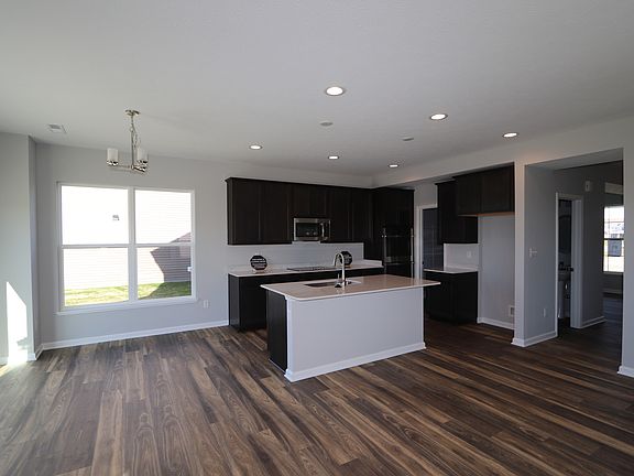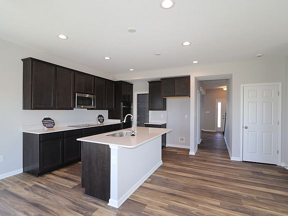 This 2-story home boasts 4 bedrooms, 2.5 bathrooms, and a 2-car garage. Step inside through the inviting front door and be greeted by a flexible room just off the guest entry. As you continue, you'll come across a conveniently located half bathroom before entering the kitchen. The kitchen features an island and walk in pantry, with an adjacent extended dining nook bay. Off the dining nook bay is an exterior patio. The gathering room is bathed in natural light from 3 large windows on the back wall. You'll find the mudroom and the owner's entry with built in cubbies next to the garage. Venture upstairs to discover your owner's suite, 3 secondary bedrooms, and the laundry room. The secondary bedrooms share a full bathroom. 2 of the secondary bedrooms have walk in closets. The large owner's suite features a tray ceiling and offers its own in-suite bathroom with a dual-sink vanity, shower, private toilet area, and a walk-in closet.