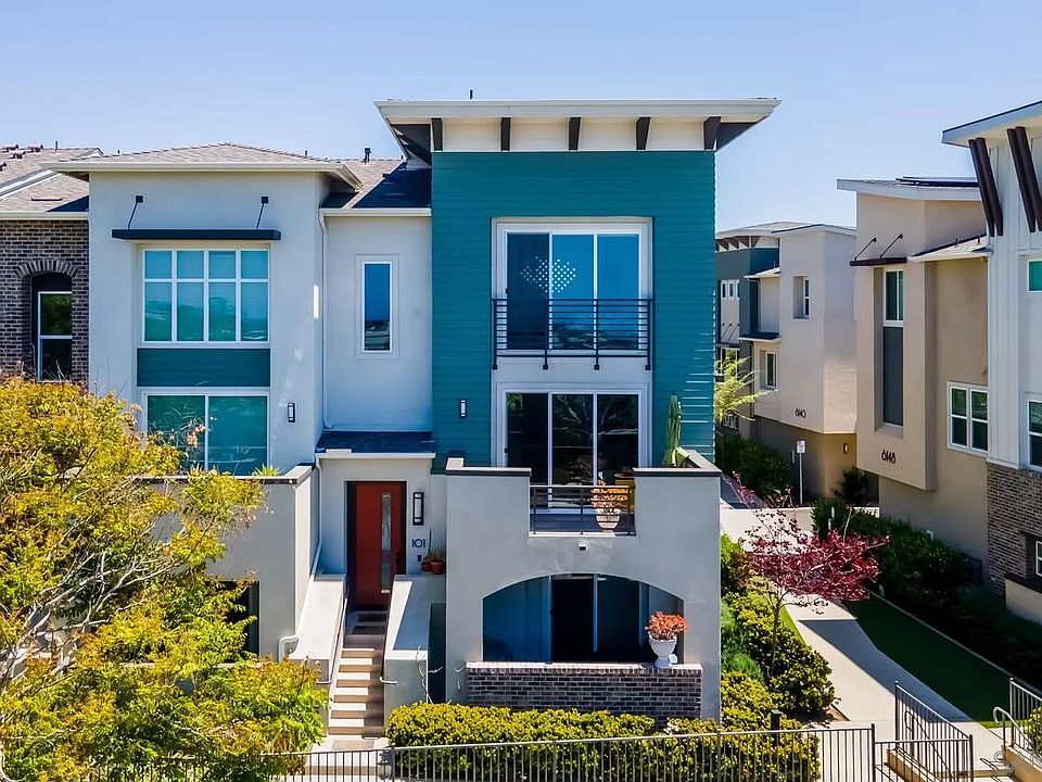 Introducing this exquisite Bressi Ranch tri-level townhome nestled in the coveted Kensington at the Square community adjacent to Bressi Village shopping. This end unit townhome is located on the sought after West facing side of Colt Place and offers tons of windows and natural light with ocean views and coastal breezes! This impeccably appointed home has so many upgrades including dual zoned air conditioning, reverse osmosis filter, tankless water heater, EV charger hook-up and solar. The list continues with custom window coverings, LED lighting with dimmers, upgraded wood-look tile, upgraded carpet, upgraded open stair railing and more. There is a first-floor bedroom, full bath and glass slider to a private patio spacious enough for a grill and seating area. There are 9 ft ceilings throughout the home and a spacious oversized (due to this home’s location) attached 2 -car garage. The second floor boasts a generously sized living area, showcasing a sleek and modern kitchen with recessed LED lighting, upgraded cabinets and 2 tone quartz countertops, stainless steel appliances, a walk-in pantry, and an oversized island perfect for everyday use or entertaining guests. There is a custom pull out drawer for pots and pans and an electrical outlet added in the island for a wine fridge or microwave. The expansive and inviting great room has soothing natural sunlight through-out the day, and a glass slider extends the living area to an exterior patio, where friends and family can enjoy daytime or sunset views. On the third floor, the primary bedroom has an ocean view!