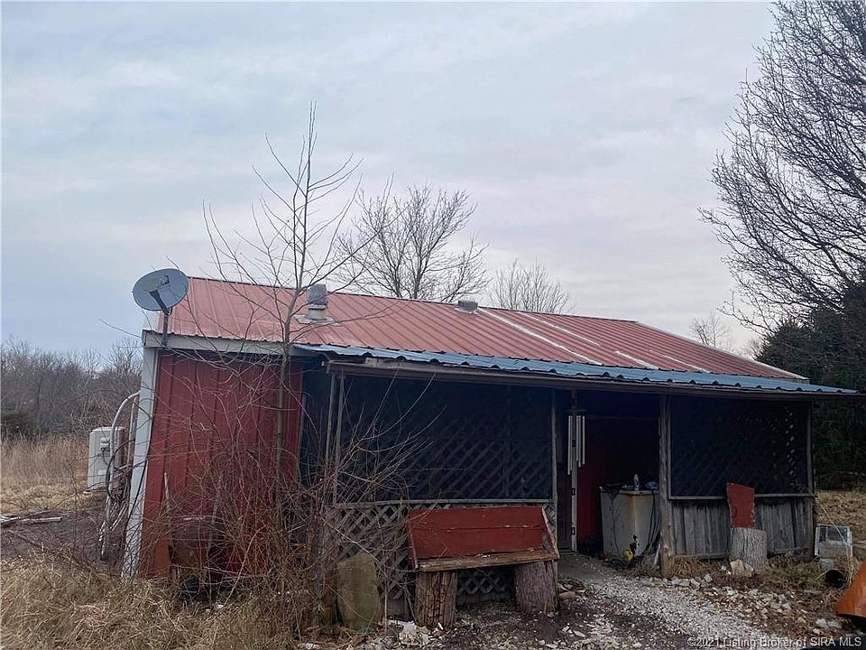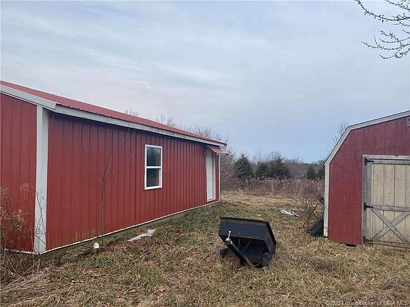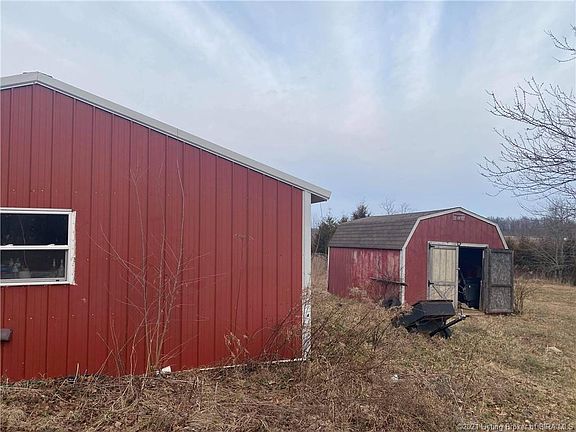 AWESOME POTENTIAL! Pole Barn style dwelling, with acreage! Country Living! With a finishing touch, it can be great! Small pond on Property and a Creek running through! Convenient Location in between Scottsburg and Salem. All data is approximate and should be verified by Buyer via Inspection and or survey. Dwelling is plumbed for a kitchen but it is NOT finished.