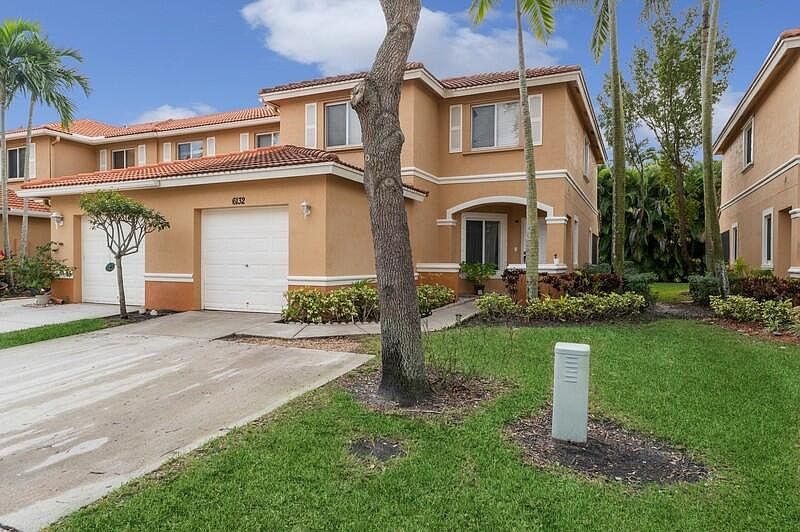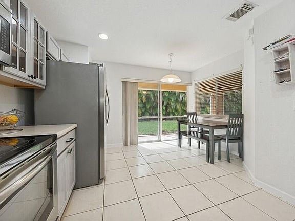Very nice end unit with private views. The interior of this home is tiled on the1st floor, carpet upper floor in bedrooms and loft. The eat-in kitchen has corian countertops, farmers sink and ss appliances. Generous understairs storage. The AC is newer, as well as the washer and dryer. The windows and sliders are protected with hurricane panel shutters. The patio is screened, no homes behind just great privacy. The location of this home is very close to the entrance of Jog Road leading you to highways I-95, the Florida Turnpike, also to entertainment, shopping, golfing, beaches, restaurants and so much more! The amenities include pool, fitness center, tennis, playground. Pets are welcome. All sizes and fees are approx.