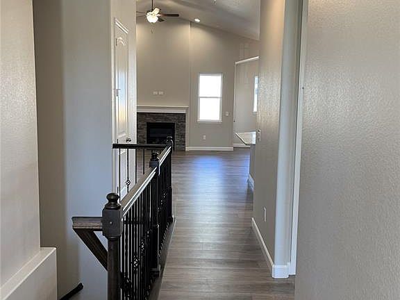 Open and dramatic perfectly describe this ranch style floor plan. The main level is adorned by high vaulted ceilings that flow smoothly from the entryway to the great room into the kitchen. Hardwood floors throughout the living areas give the main level a rich custom feel. The spacious master bedroom is sophisticated with vaulted ceilings and has a walk out to the back patio. Relax in the luxurious 5 pc master bathroom featuring ceramic tile, soaking tub, granite counter tops and an upscale standalone shower. The dramatic feel of this floor plan extends into the fully finished basement with 9 ft ceilings, built in entertainment nook, 2 large bedrooms and a huge 247 sq ft storage room. Slab granite counter tops in kitchen and all bathrooms, 8ft doors on the main level, stacked stone fireplace in family room, surround sound prewire in family room, gas stove, wrought iron railings, air conditioning and a garage door opener complete this ranch home!