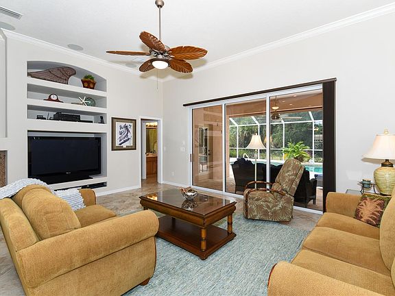 Looking for privacy while still being close to everything in University Park? Look no further than this 3/2 with a den! River Park at Mote Ranch is close to all that the area has to offer. This beautiful move-in ready home backs to a nature preserve that is adjacent to the river. Talk about privacy! You have a gorgeous view while you take a dip in the heated 28' salt water pool and spa. Why wait to build when you can move right into this gorgeous home with tons of upgrades! There is plenty of room to spread out in this spacious split floor plan. From the beautiful 20" tile to the gorgeous high-end solid wood cabinetry, granite counter tops, and stainless steel appliances, this home is sure to please anyone with an eye for detail. There is an extra-large dining room (22 x 13) for entertaining just steps away from the kitchen. High ceilings, crown moldings, large rooms, lanai is 49' x 27' with coral lock pavers, speakers throughout the entire home and pool area, den with beautiful wood cabinetry and a bar. There is also a gas range and gas fireplace. Come see why not many sell once they move into this community with wonderful neighbors! Furniture may be purchased separately. All room sizes are approximate and should be verified by the buyer.