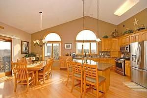 Beautiful open floor plan and gigantic kitchen which was recently updated with granite tops, stainless appliances and glass/marble mosaic backsplash. Almost 3.5 acres with rolling hill views and a creek running thru the property. Vaulted great room and 9' ceilings thru the remainder of the home. Huge bedrooms, walk-out lower level w/stone fireplace and all in move-in condition on quiet cul-de-sac.Highlights and Special Features:•Total of three baths and four bedrooms with room for one more in the walk-out lower level•Gleaming oak hardwood floors with a Brazilian cherry border were recently redone with a high traffic industrial finish•Gorgeous gourmet kitchen with marble/glass mosaic backsplash, center island, and stainless steel appliances•Stainless steel appliances include Kenmore Elite gas stove, dishwasher, microwave, and refrigerator with ice/water dispenser and pull-out freezer drawer•Dining room with beautiful center chandelier walks out to the spacious back deck with views of rolling wooded hills•Main floor master bedroom boasts tray ceiling, wooded views, and private master bath •Main floor laundry room with large square ceramic tile is adjacent to garage for easy clean-up•9’ ceilings throughout all bedrooms, bathrooms, hallways, and lower level; vaulted ceilings in the great room, kitchen, and dining room for an airy feel•Lower level bath with large-square tile and a separate glassed-in shower; jetted tub with ceramic tile surround•Large lower level walk-out family room features a stunning floor-to-ceiling stone fireplace, extra-wide trim, recessed lighting and crown molding•Nearly 3 ½ acres with views of rolling wooded hills and creek running through property, all located on a quiet dead-end street•Wonderful curb appeal with recessed and sconce lighting, front porch seating area, and vinyl siding with stone accents•Sheet-rocked 3-car garage with opener, keyless entry, and pet door to built-in outdoor kennel