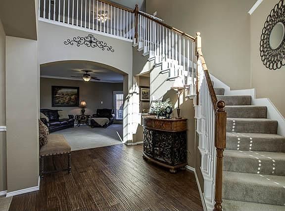 Open floor plan, scraped hardwood floor entry, formal Dining room w box frame molding. Kitchen hosts granite counter tops, stainless steel appl, gas cooktop, recess lighting, ceramic tile fl, tile backsplash that overlooks Living room w cast stone Fireplace, Master down, includes vanity area w duel sinks, separate shower, garden tub & walk-in closet. Upstairs game room or 2nd Living area, 2ndary bedrooms & Bonus room, open patio overlooking the backyard with board-on-board fence.