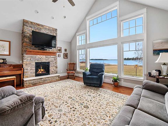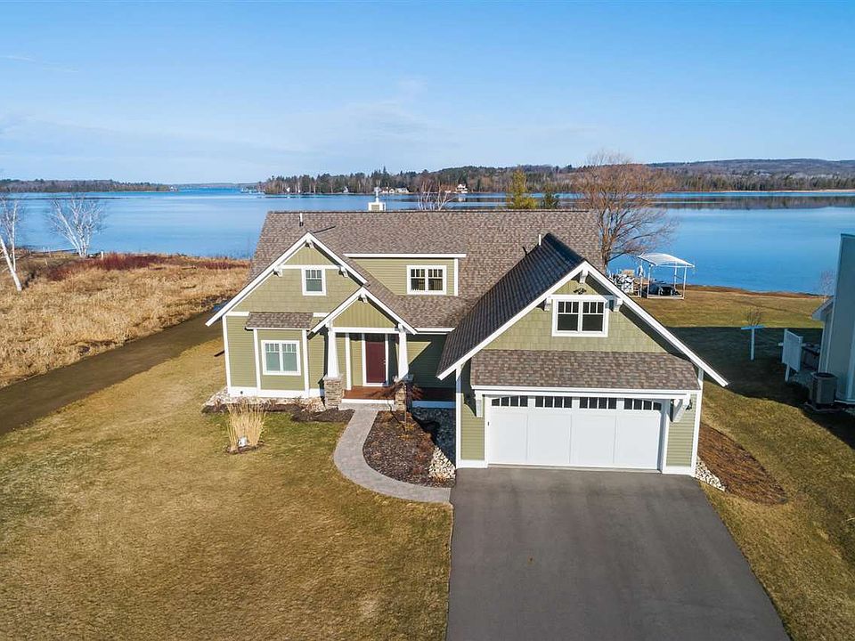 Serene lake views, spectacular sunsets and sensational access to the beauty and bounty of Northern Michigan's Inland waterways are yours in this nearly new waterfront home. Frontage of 105 ft on Crooked Lake brings peaceful water vistas into every corner of this appealing Craftsman-style home located between the resort towns of Petoskey and Harbor Springs. A brick paver walkway leads inside, where a wall of windows fills the house with natural light and lake views. The open floor plan, living room cathedral ceiling and nine foot main floor ceilings give a spacious feel, while the stone fireplace and oak wood floors provide classic, cozy 'up North' ambiance. Granite countertops and island bar, stainless steel appliances, large pantry and lake views greet you in the kitchen. Just off the dining room, a three season room wrapped in lake views is the perfect place for morning coffee, afternoon naps or evening nightcaps. Step out to the brick paver patio for grilling, storytelling and smores around the fire pit. Stroll to the water's edge and make plans for a day on the lake. Bring your boat: the hoist and 100ft dock are included. Fun-filled days come to a relaxing close in the main floor master suite. Soaking tub, lake views, walk-in shower, walk-in closet with built-in drawers and convenient adjacent laundry. Upstairs are two lake view bedrooms, a full bath and a flexible bonus room. The attached two car garage connects to a mudroom. A matching 1200 s.f. pole building offers a 1.5 car garage stall and enough room for an office, workshop, exercise studio or extra storage for all the year-round toys! Other 'Up North' essentials are included: energy efficient heat pump, whole house generator, Pella windows; vinyl siding and composite decking make for a virtually maintenance free exterior. The nearby conservancy lands, abundant wildlife and four season recreation make this home a natural choice for an easy year-round residence or ideal rental.