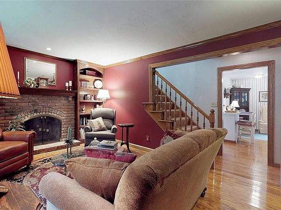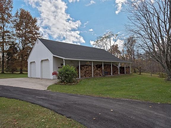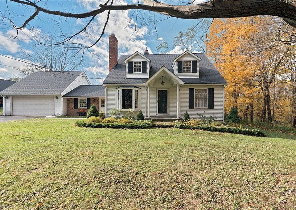 Tucked away on 11.2 beautifully wooded acres, this charming cape cod in the South Madison area is ready for a new owner. The spacious living room features a bay window with a seat, a brick fireplace, and hardwood floors that flow into the kitchen. The kitchen includes all appliances, white cabinetry, and a breakfast bar that connects to the dining room. Off of the kitchen, there is a step down family room with a built-in entertainment center and sliding glass doors that open to the deck. One bedroom and a full bathroom with a jetted tub and separate shower complete the first floor. Upstairs, you will find three bedrooms, including the master bedroom with an en-suite half bathroom. The lower level provides an abundance of space for storage, plus a laundry area with newer appliances. Outside, the back patio overlooks the serene 11.2 acre yard, and there is a detached 6-car garage used as a pole building/barn with electricity and full attic above. Located on a quiet street in Madison, this home is convenient to Hogback Ridge Metropolitan Park, River Road Park, and I-90. The wineries are also just around the corner! Do not miss this opportunity to own a charming home in a beautiful natural setting, because it will not last long!