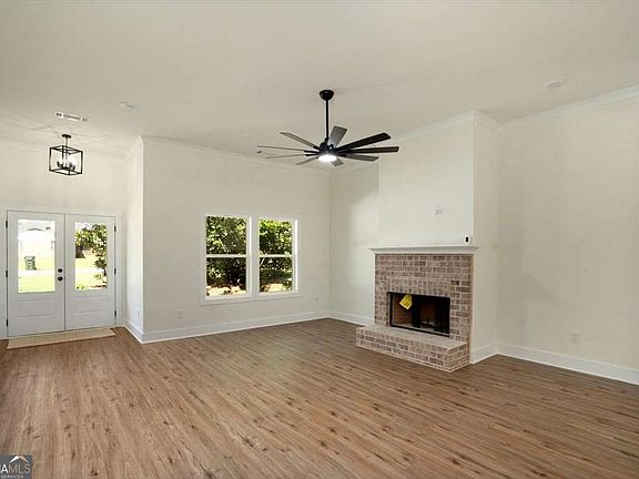 Don't miss this beautiful 3-bedroom, 2.5-bath home within the city limits! Designed for modern living, it features 9-foot ceilings and an open-concept layout. The kitchen is a chef's dream with granite countertops, a spacious island, a tile backsplash, and an oversized pantry. Relax by the wood-burning fireplace in the living room or retreat to the primary suite, complete with a freestanding tub, custom tile shower, double vanities, and a walk-in closet. The split floor plan offers privacy, with additional bedrooms and a bathroom on the opposite side of the home. Stylish and durable VLP flooring extends throughout the main living areas and bathrooms. Enjoy outdoor living on the oversized covered back porch, perfect for entertaining or unwinding. Need even more room? There is a bonus area that could be finished for an additional fee. Call Jami for more information! PLEASE NOTE: Plans may vary at the builder's discretion. Floor plan measurements are approximate. Do not enter the property without an agent's knowledge. Estimated completion: End of July 2025