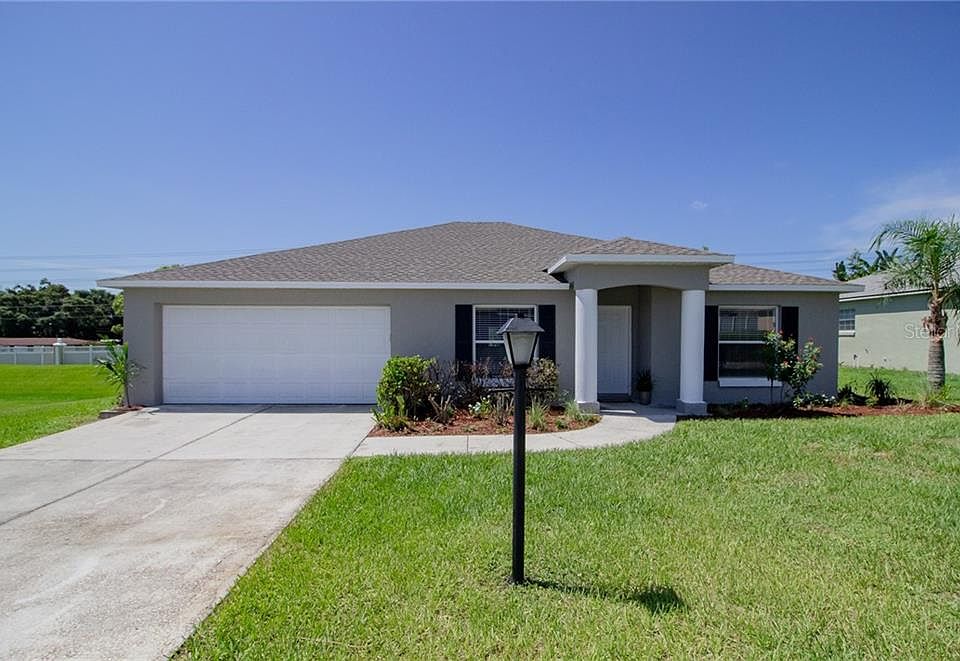 Lovely 3/2 located in a quaint community in Southeast Lakeland. This home has a formal dining room, large kitchen with a breakfast bar opening up to the spacious living area and French doors leading to a wrap around lanai which is perfect for family gatherings and entertaining. Split bedroom plan; master bedroom features a tray ceiling, walk in closet, dual sinks, garden tub and separate shower in the master bath. Oak wood floors and tile in the living areas and brand new carpet in the bedrooms, a 2 year old architectural shingle roof and 2 car garage. Great Location! Located near shopping and medical facilities and close to the Polk Parkway for an easy commute to Tampa or Orlando. Don't miss out on this home!