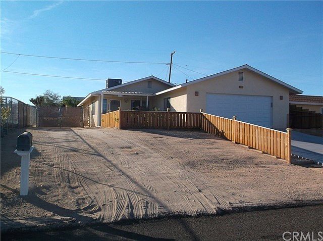 Super clean, super cute, 3 bedroom 2 bath home in Joshua Tree. Located moments away from the Joshua Tree National Park, this home has beautiful views of the South facing mountains and the surrounding town. This newly built home has an open floor plan with access to the private back fenced in patio area. The hallway has extra cabinetry, the bathrooms are super clean and adorable. The bedrooms are nice sized and the master bedroom closet is HUGE. The front covered porch has a private garden with grape vines and roses. There is RV or boat parking that has electrical hook-ups...or put in your pool and have electrical access as well. The 2 car garage has a massive amount of cabinetry, has been finished complete with ducting for heat and AC...there is also an additional window AC unit. The backyard garden shed, has electricity and there is an automatic drip system for the plants. Call today to see this super cute find in the heart of Joshua Tree.