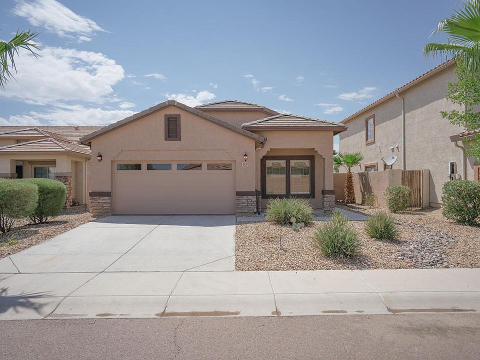 Enjoy visiting this impressive property in Buckeye! This single-level four-bedroom home features a fully landscaped front yard, covered back patio, and a private pool. Step into the kitchen to find granite countertops and an island with room for several bar stools. You can also enjoy dining in the formal dining room or just off the kitchen. The Master suite features dual sinks and as well as a walk-in closet in. The home also has an indoor laundry room and a two-car attached garage. The home has received a full service in home cleaning including steam cleaning the carpets. Relax in your new home with the confidence that your investment has been repaired and renovated for your future.