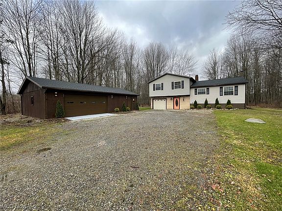 Located in a Beautiful country setting just off of Route 7 in Williamsfield. This Split level has much to offer and plenty of room to spread out. Large breezeway when you first walk in with nice size storage closet. Immediate access to the full basement ready to be finished. Make your way up to the oversize living room featuring a picture window overlooking the wooded back yard. Updates include fresh paint and flooring throughout. Kitchen updated, bathrooms updated. Well pump and tank new, New roof 2023. One car attached garage along with a detached 24x40 5 car garage. Pond at the front of the property adds to the perfect country feel. Schedule a showing and take a look today.