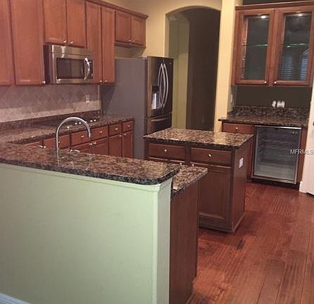 Breathtaking huge high ceilinged home with a spreadout floorplan is warm and welcoming. Ceramic wood flooring throughout. Oasis saltwater app controlled pool with waterfalls and a spa with view from all windows and lush landscaping. Screen lanai with patio area and child fence. Huge kitchen with a double oven, cooking island, breakfast bar, granite and plenty of cabinet space. Two living areas, eat-in area and separate formal dining room. Split 4 bedroom 3 bath floorplan plus a den! All appliances included. Laundry and inside utility room that includes the washer and dryer leads to the 3 car garage. Lawn and landscaping is maintained for you and pool is maintained for you. Exterior pest control is also included. Room sizes are approximate.