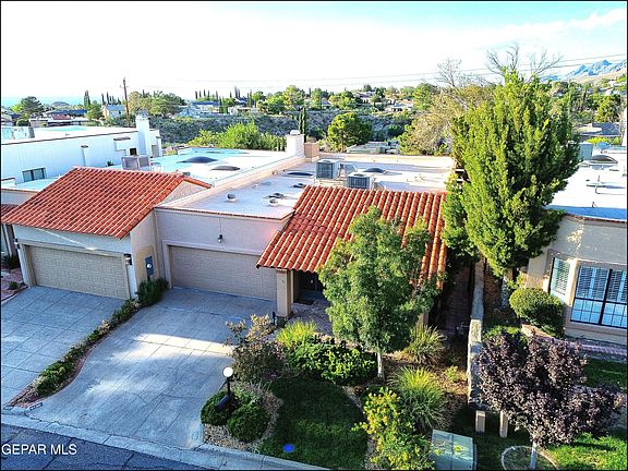 A rare opportunity to own a beautifully appointed home featuring 4 bedrooms/3 full bathrooms located in the prestigious gated community of Los Felinos in Coronado Country Club Estates. Offering a very large primary suite, shower, sep tub, walk-in closet, dbl sinks, large living room with a stone fireplace, high ceilings, lots of light, French doors, an open kitchen/Quartz counter tops, breakfast bar, solid wood cabinetry, Monogram GE appliances including the stainless-steel refrigerator, built-in microwave, gas stove, electric oven, formal dining room, newer roof, Pella windows and two zoned HVAC systems installed in 2022. Enjoy the Built-in Tec Infared gas grill, water fountain and a fishpond on the patio and you will love the beautiful views to the Franklin Mountains and the Upper Valley. Enjoy community swimming pool with a cabana and a grill for entertaining, a tennis court and two pickle ball courts. One of the most sought after gated communities on the Westside. Very close to Coronado Country Club