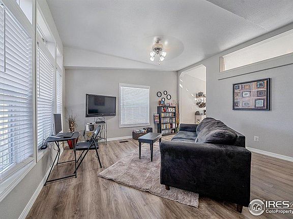 Wonderful opportunity to own your own ranch home in Frederick for under $300,000! Walk into beautiful vaulted ceilings and new laminate plank flooring throughout the entire main floor. Open family room, connects to the remodeled large kitchen. Kitchen has new premier cabinets with soft close doors, drawers, & crown molding, under mount lighting, new quartz counters, stainless steel appliances, and beautiful tile floors. Ample storage, pantry, and generous space to have a dinner table. Three bedrooms including a up primary suite with updated ensuite bathroom and updated secondary bathroom both with skylights. Laundry hookups, (washer and dryer are included) in the mudroom from the garage. New windows , and roof was replaced in 2019. New interior and exterior paint. The backyard is not fenced but offers plenty of space between neighbors and a patio space perfect for grilling out, also included is an automatic sprinkler system. The garage is long enough to easily fit a large pickup truck, has a large workbench, and plenty of storage cabinets. Additional guest parking space. The lovely community of Prairie Greens features a heated pool, playground, clubhouse, and an exercise facility open at all hours. Call listing agent if your buyer needs help with lending on this property. We have a lender ready to help your client for this type of home. Air conditioning. New buyers will have 48 hours of accepted offer to submit community application. The HOA fee that is quoted is the land lease fee. Showings start September 16, 2022