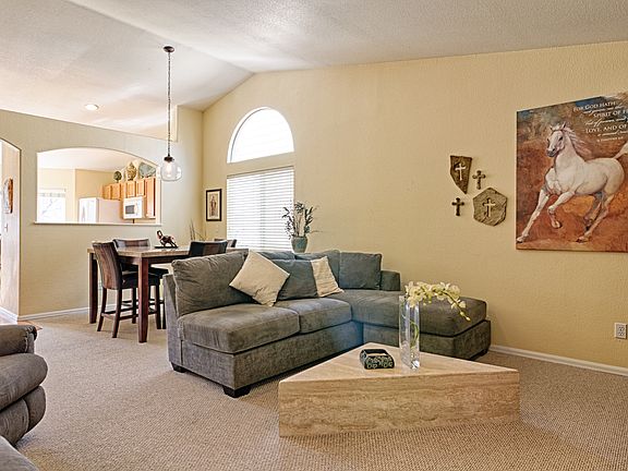 Located in a gated community on the N/W side of Colorado Springs, this beautiful ranch home is the perfect place to call home ~ the size is just right & shows like a model! Inside: vaulted ceilings give you a light, bright & airy feeling that carries into the open great room. Hardwood floors adorn the entry and carry throughout much of the home. The eat-in kitchen has a breakfast nook that showcases the gorgeous mountain view & resident deer. Enjoy upgraded Corian countertops, gas range/oven, & plenty of counter space. The master bedroom is complete w/ its own private bathroom w/ tile flooring, dual vanity sink, oversized shower w/ handicap bar, & walk-in closet. Two additional bedrooms for guest room/office/play room. The secondary bathroom has lovely custom tile floors & tile in the tub/shower. Easy access from the laundry/mud room into the the two car garage, complete w/ epoxy floors & overhead storage w/ built in shelving. The home also has A/C, custom paint, cozy tile-accented gas fireplace in the living room, upgraded lighting, & new water heater. A feeling of life & hospitality exudes from every part of this home. Experience the best of Colorado living in this private gated community of Rockrimmon Vista ~ and RELAX ~ the HOA maintains the lawn & shovels the snow for you! You will love the location, so close to Ute Valley Park. Also, close to D-20 Schools, parks, hiking trails, biking trails, nearby shopping center, close to Trader Joe's, UCCS, and easy 1-25 access.
