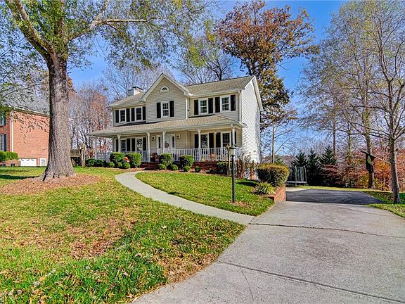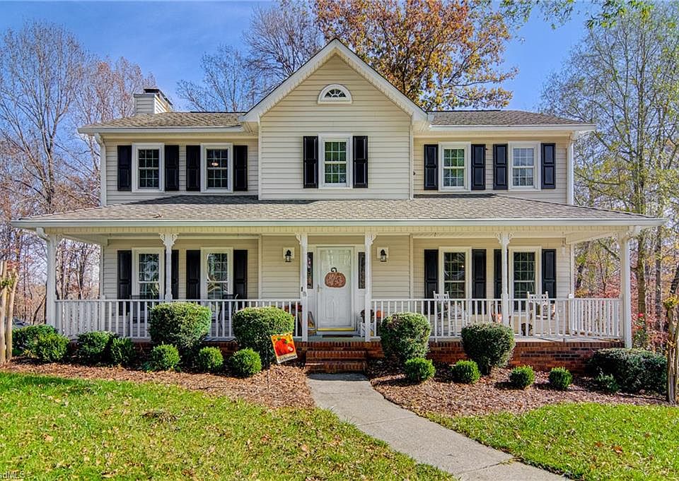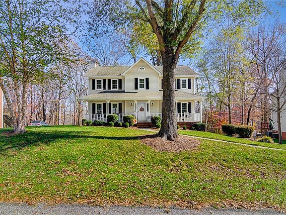 Beautifully updated 4 bedroom 3 1/2 bath home with a lovely rocking chair front porch to welcome all visitors. The expansive kitchen with granite countertops and large island features all stainless steel appliances, including fridge, pantry, built in desk space and breakfast nook. Generous cabinet and storage space. Tons of natural light flood the home with warmth. Tray ceilings in primary bathroom with skylights and large walk in closet. Separate tub and shower. New(2022&2018) Heat Pump. Updated flooring and paint. Composite deck overlooks beautiful backyard and will assure maintenance free entertaining for years to come. Large building in backyard. NO HOA! Neighborhood pool available to join. This is a dream come true!