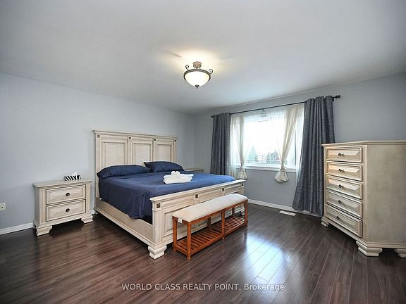 Do not wait and loose this opportunity of owning a rare and unique prestigious property on a quite sought-after street with 4 beds and 3 baths, built on a pie shaped lot. The lovely Kitchen is beautifully designed to give complete privacy, but accessible to both dinning and family room. Driveway built with heart shaped concrete and asphalt. Lovely Patio built with concrete that gives wonderful relaxing comfort in summer evenings. Many many upgrades including windows, appliances, floors, washrooms, garage doors, roof shingles and kitchen. Basement with comfortable carpet floor gives a feeling of walking on the clouds. The house is fully furnished with all high end furniture and other equipment, and can be sold with everything included. The primary king and queen's bedroom gives a view of the clean and well maintained curvy street and has a walk-in closet. Pot lights are all around. 5th bedroom provide extra living in the basement.