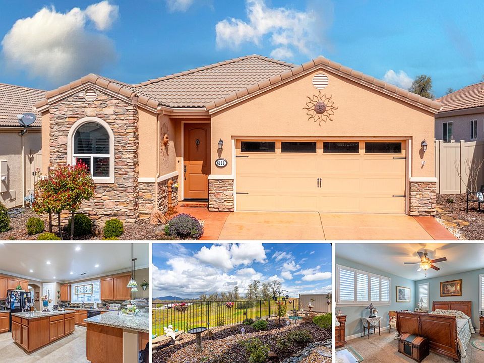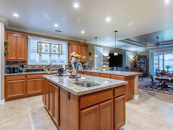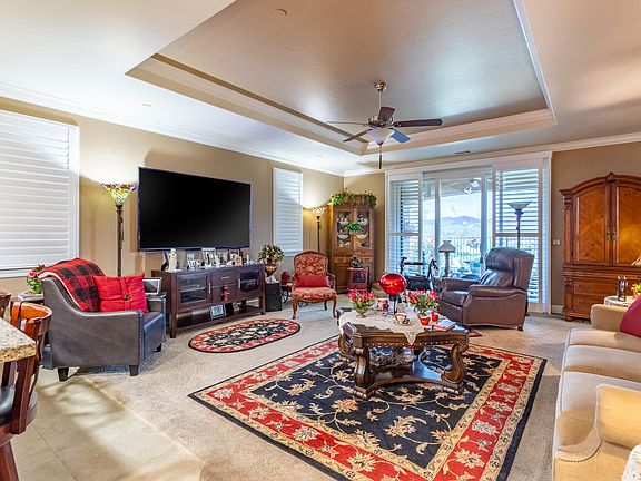 Experience luxury living in the gated Tuscany Villas neighborhood with breathtaking mountain views. This beautiful 3-bedroom, 3-bath home offers an exquisite interior and upscale amenities throughout. The stunning kitchen is a chef's dream with granite countertops, tiled backsplash, a large center prep island with sink, sleek black appliances, and a pantry. Entertain in style in the living room and formal dining space, adorned with a trey ceiling and crown molding. Retreat to the relaxing primary bedroom featuring an ensuite bath with granite countertops, double sinks, a soaking tub, shower, and a walk-in closet. Outside, enjoy the covered back patio, low-maintenance landscaping, and fenced backyard, perfect for outdoor gatherings and relaxation.