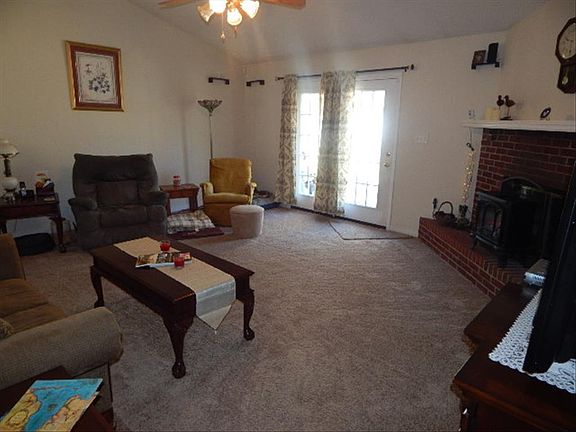 Well maintained home on large lot. 3 bedrooms, 2 bathrooms split bedrooms. Just under 2000 square feet. Living room with corner wood burning fireplace. Separate formal dining room or bonus room. Spacious master bedroom and bathroom; master bath with his and her closets, whirlpool tub and separate shower. Kitchen has ample cabinets and counter tops, pantry and breakfast room. The washer, dryer and refrigerator can remain with acceptable offer. Lots of windows! Lots of closets! The back yard is fenced, and there is more yard behind the fenced area. There is a screened gazebo and koi pond on the back deck, and there is also a 20x16 patio! Home also features two storage buildings and a digital security system with cameras.