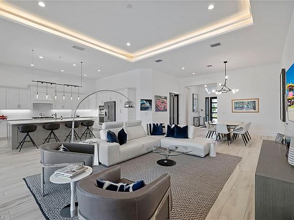 AVAILABLE OFF-SEASON April through December 2025. Rented January - March 2026. Enjoy this absolutely stunning, beautiful and professionally decorated contemporary home in Isles of Collier. This spacious 3 + den home boasts 3.5 baths, 3 car garage plus a chef's gourmet kitchen, Sonos speakers, outdoor kitchen, pool and spa with huge lake views. Amenities at The Isles of Colliers Preserve include a Clubhouse, Resort-Style Pool, fitness center, Lap Pool, Tennis, Pickleball, bocce, tennis with endless walking and bike trails. Downtown Naples, restaurants and beaches are less than 15 minutes away. Pricing depends on months rented and length of stay! One guest bedroom is set up as an office. Three bedrooms have beds. Master bedroom and two guest bedrooms have beds.