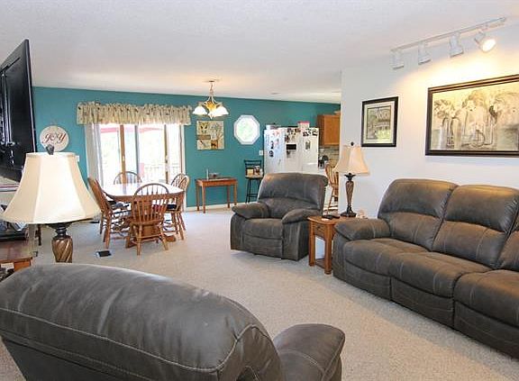 4 bedroom 2.1 bath split entry home on 2.78 acres m/l. Kitchen with large island opens to dining room and great room. Master suite on main level as well as 2nd bedroom and 1/2 bath. Dining room walks out to deck overlooking beautifully manicured acreage. Lower level has 2 bedrooms, 1 bath and additional non-conforming room. Large rec room walks out to back patio and fire pit. Oversized garage has extra room for storage or a motorbike plus loft storage! There is also a shed for storage of outdoor lawn equipment. Great outdoor space for entertaining extra large groups of people! Seller is related to agent.